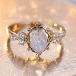Anel Feminino de Opala Estilo Romântico e Bonito