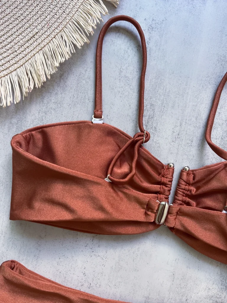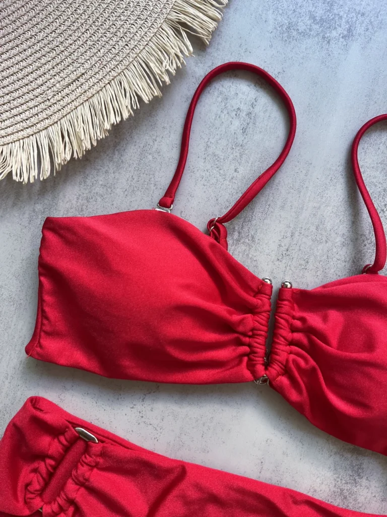 Conjunto de biquíni feminino de 2 peças com top bandeau estruturado, feito para realçar a silhueta com conforto.