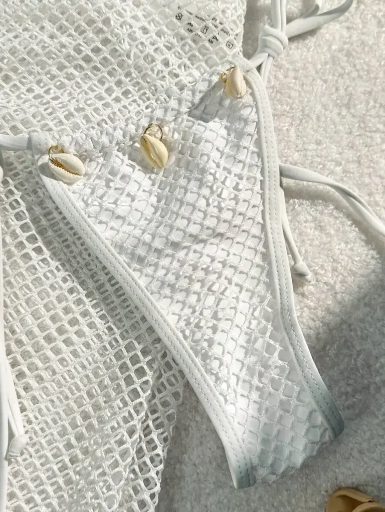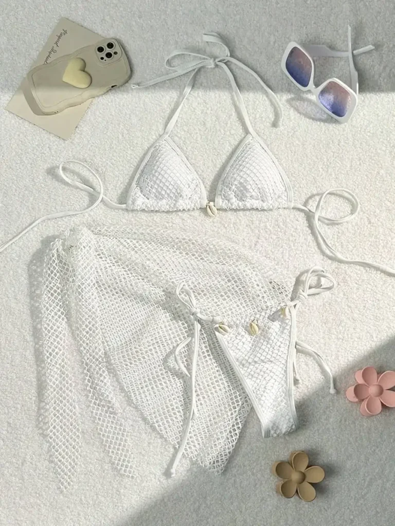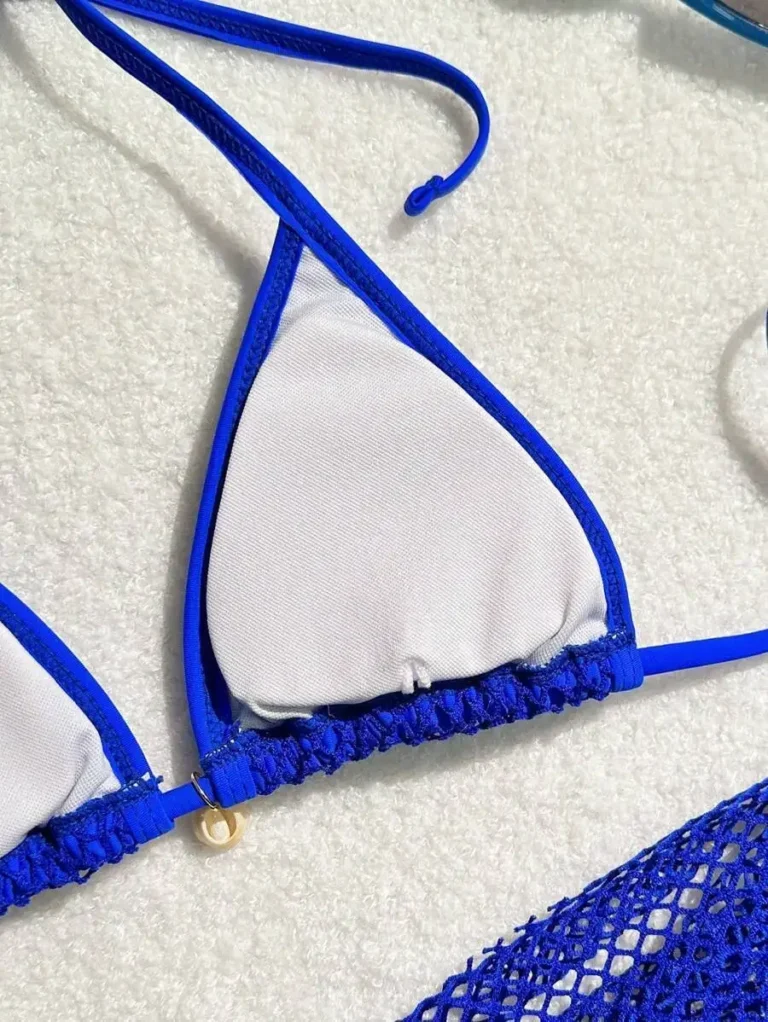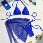 Conjunto feminino de 3 peças com design sexy e modelagem de cintura baixa, perfeito para dias de sol e férias.