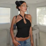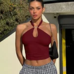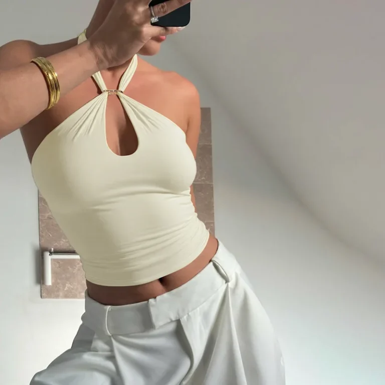 Blusa projetada para momentos de celebração, desde festas exclusivas até o agito dos carnavais, esta peça combina a simplicidade do estilo casual com o impacto do design sem costas. Confeccionado em tecido misto de poliéster e elastano com técnica de tricô, garantindo frescor e movimento.