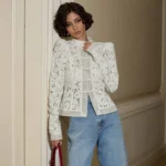 Uma blusa refinada com design slim e bordados delicados, unindo estilo vintage e elegância contemporânea.