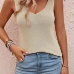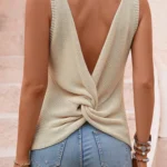 Blusa de tricô estilo moda urbana, uma peça moderna com ajuste fino que valoriza a silhueta. Possui decote em V e um detalhe cruzado diferenciado, trazendo personalidade ao look. Além disso possui tecido de poliéster com alta elasticidade oferece conforto e liberdade de movimento, enquanto as mangas curtas e o peso médio do material a tornam ideal para diversas ocasiões.