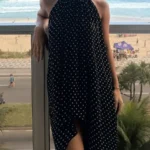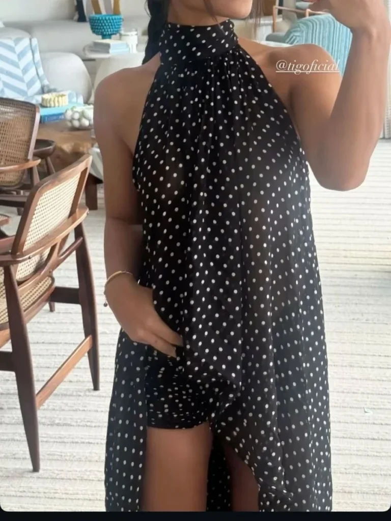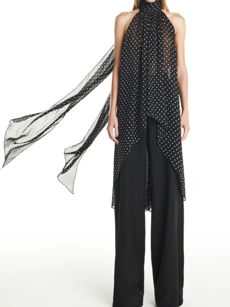Blusa com design minimalista e alças finas, desenvolvida na estética Y2K para a temporada de verão. A peça apresenta um acabamento sólido em tecido com toque de casimira e é confeccionado em uma mistura de poliéster e elastano, proporcionando conforto.