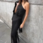 Blusa estilo colete com design sem costas, desenvolvido na estética Y2K. Além disso a peça apresenta um visual chique e minimalista com acabamento sólido e comprimento curto, ideal para composições modernas e urbanas. Confeccionado em tecido com toque de casimira, o modelo oferece um leve estiramento para melhor ajuste ao corpo.