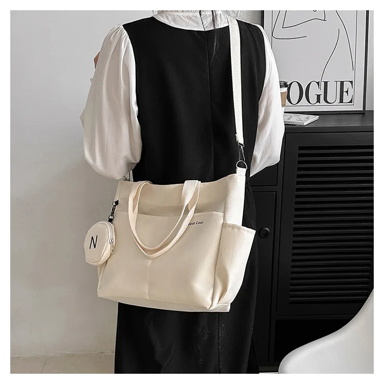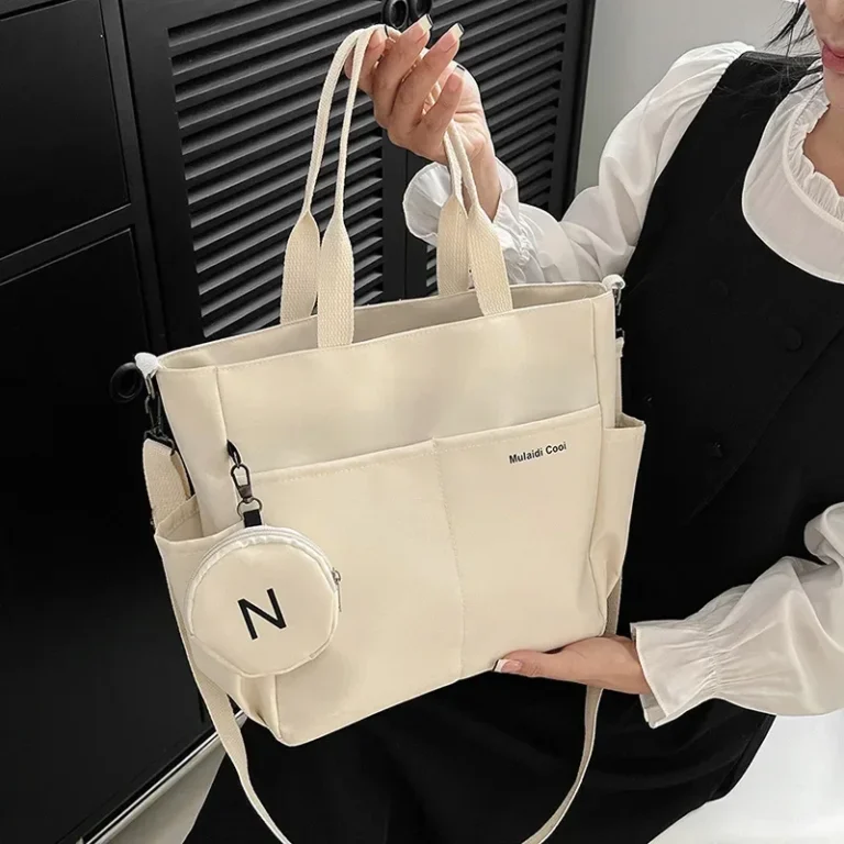 Bolsa versátil em formato sacola, ideal para o dia a dia. Confeccionada em náilon de alta resistência, esta peça oferece três formas de uso: como bolsa de ombro, transversal ou de mão, adaptando-se perfeitamente a diferentes ocasiões. Além disso possui um design de padrão sólido e acabamento minimalista, ela conta com compartimentos estratégicos, incluindo um bolso externo aberto para acesso rápido e um bolso interno dedicado para celular, mantendo seus pertences organizados e seguros sob o fechamento por zíper.
