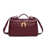 Bolsa de mão retangular com design moderno, desenvolvida para ser utilizada em todas as estações do ano. A peça apresenta um acabamento sólido em PVC com detalhes decorativos cruzados, oferecendo versatilidade para diversas ocasiões.
