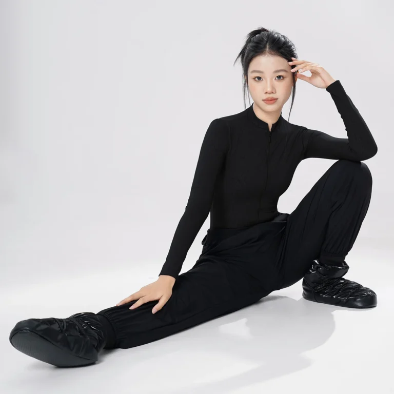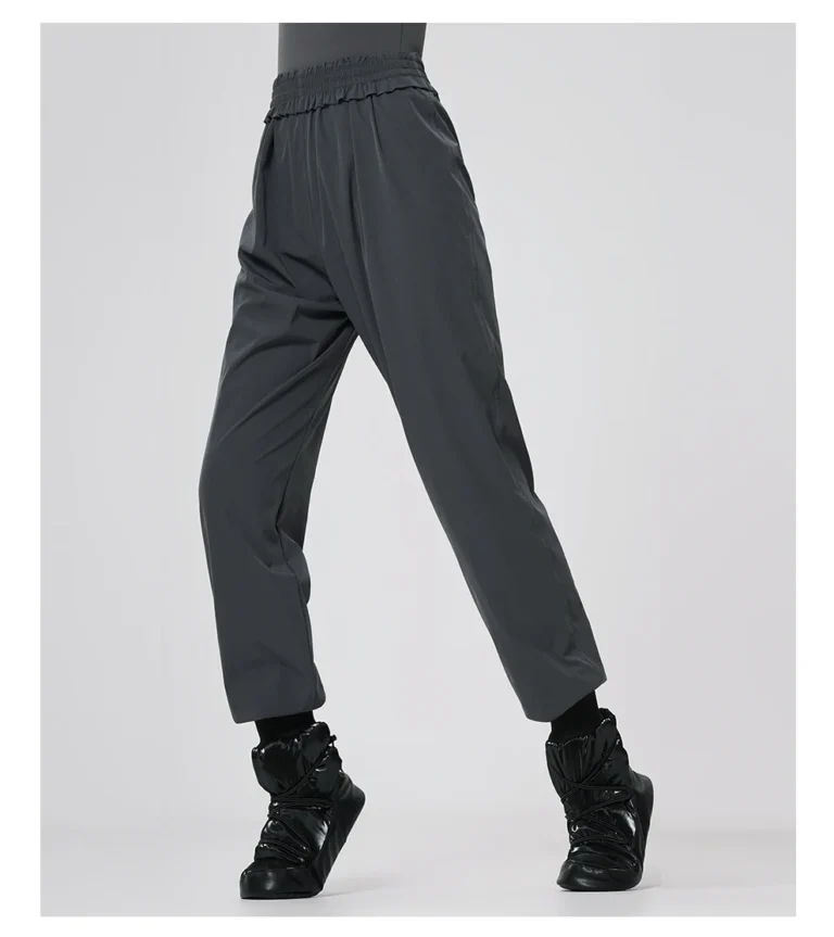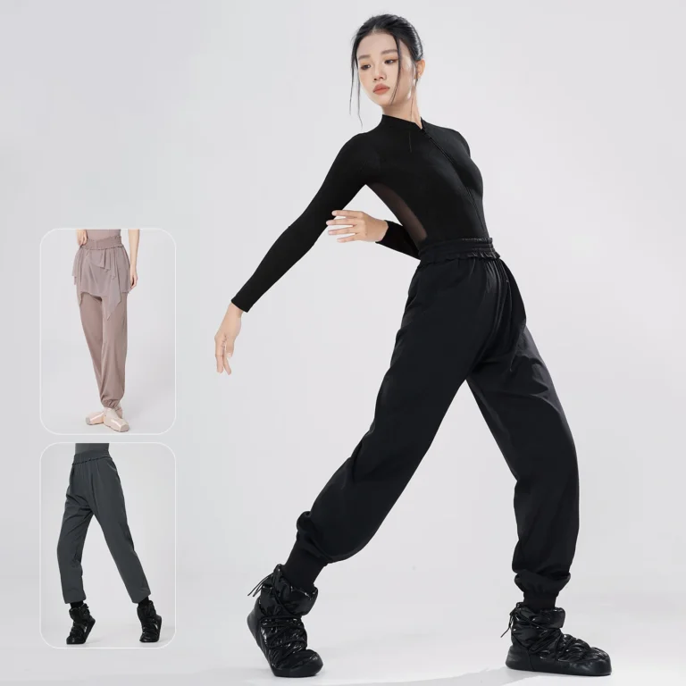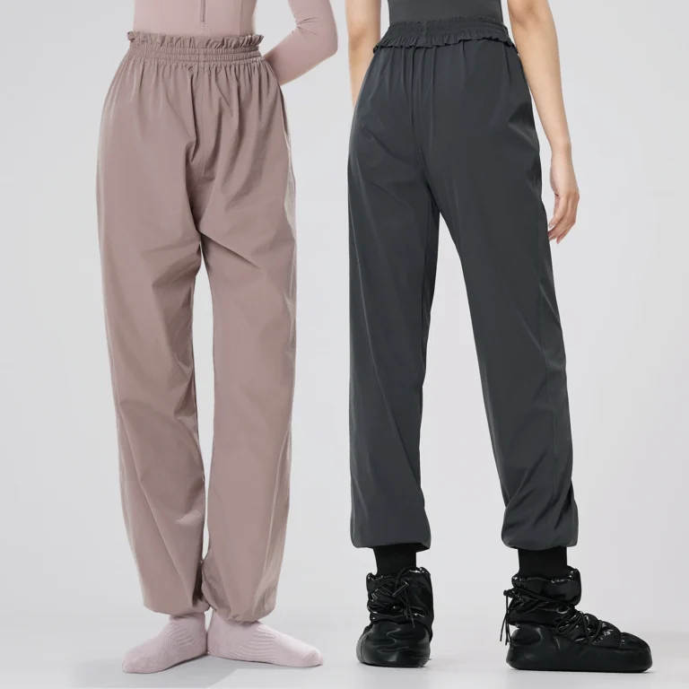 Calças térmicas de ballet confeccionadas em mistura de náilon e elastano com alta densidade e elasticidade em quatro direções. Além disso a peça apresenta design de cintura alta com cós elástico e punhos ajustáveis que permanecem no lugar durante o movimento