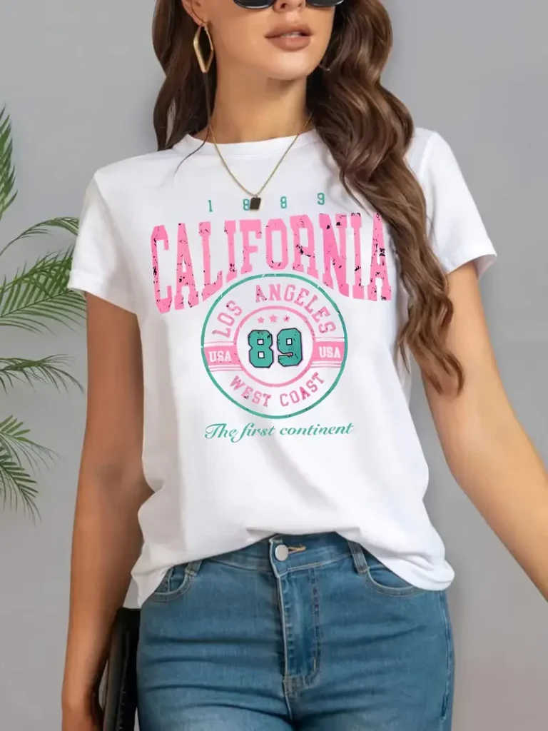 Modelagem casual com estampa artística temática Califórnia/Los Angeles.