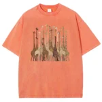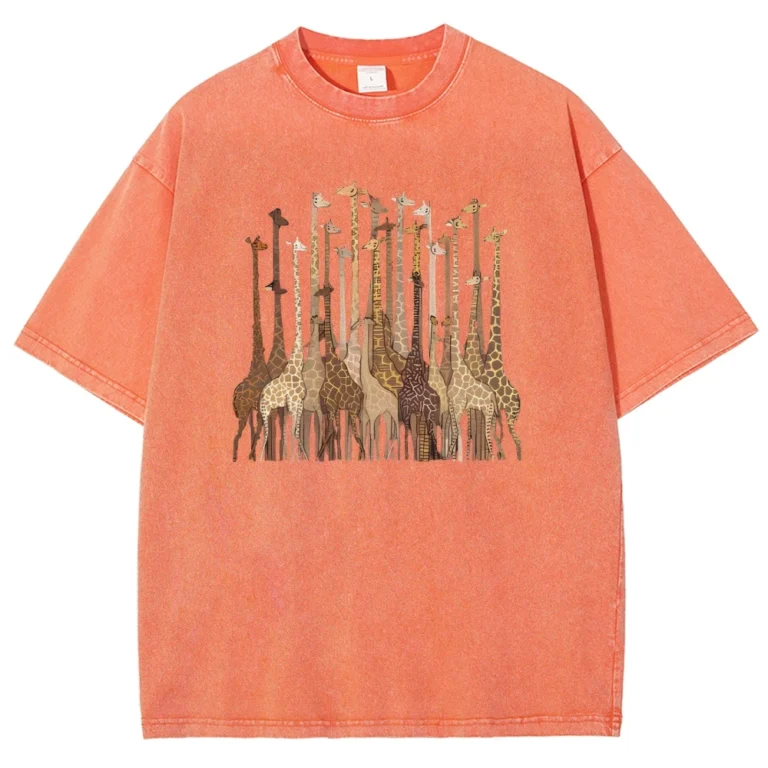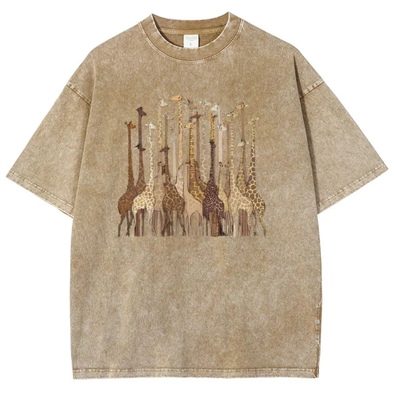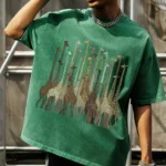 Modelagem solta, vibe retrô americana e estampa divertida de girafa.
