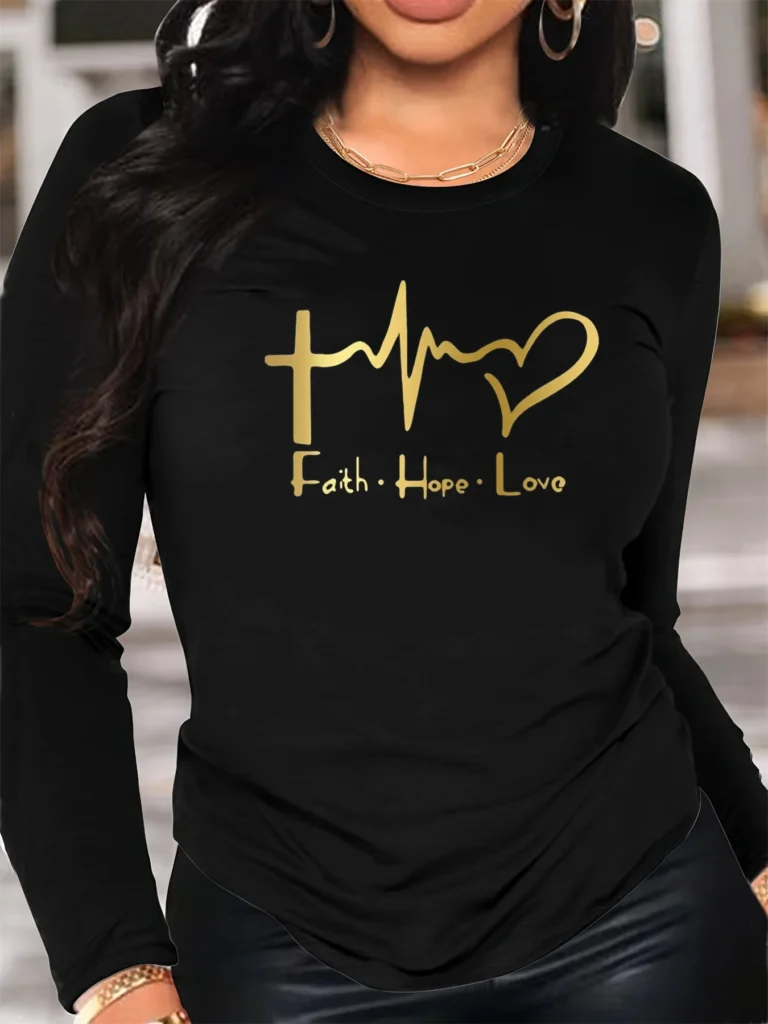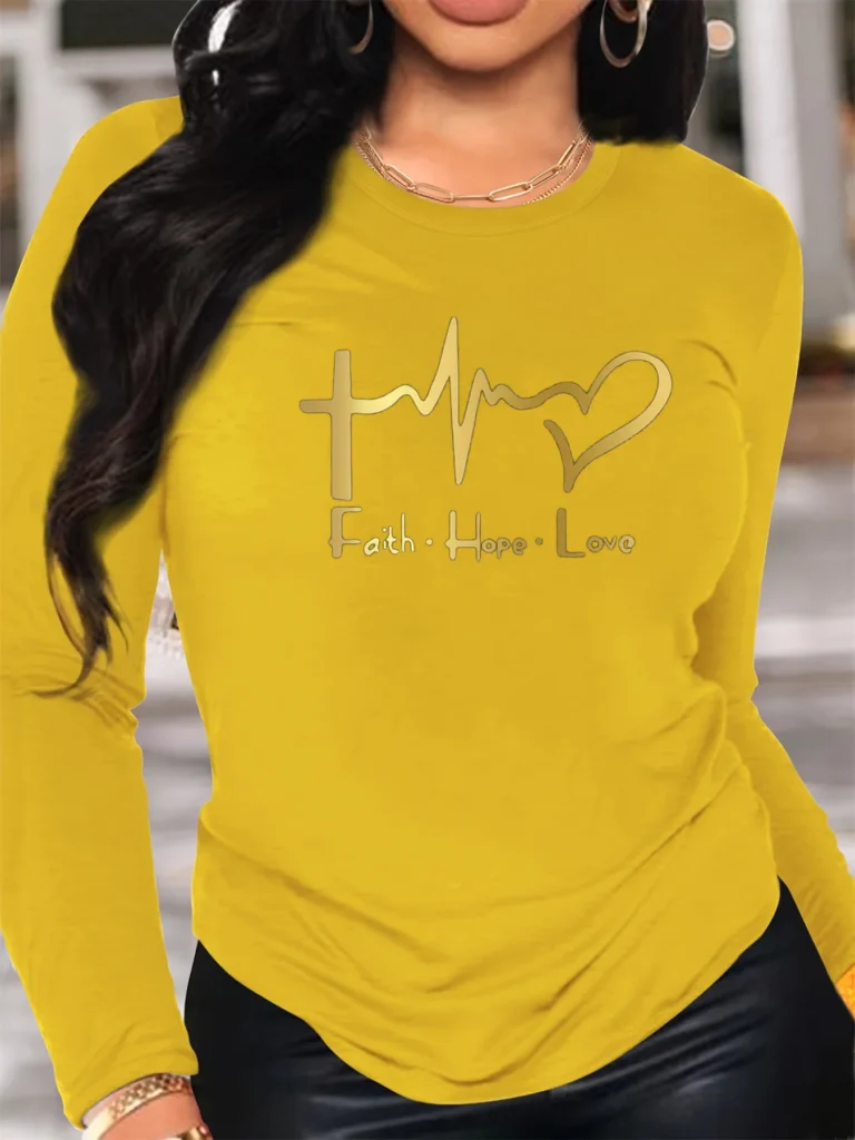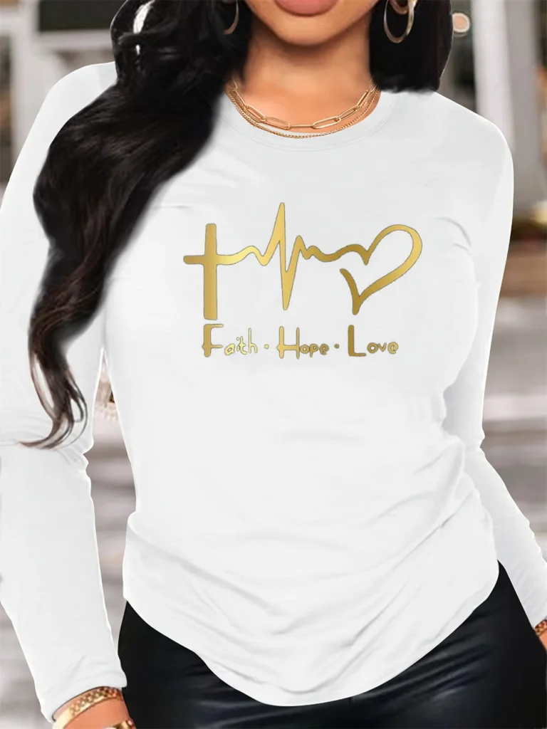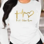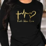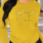 Design casual com estampa gráfica de coração e mangas longas, ideal para uso no dia a dia.