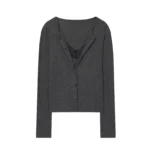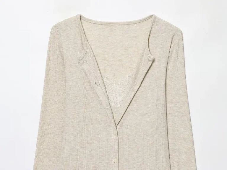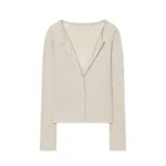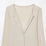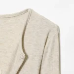 Casaco curto com design estruturado confeccionada em poliéster com tecelagem em tricô. Além disso a peça apresenta decote em V e fechamento frontal em peito único com acabamento em cintura larga. O modelo possui mangas compridas e detalhes decorativos em renda que conferem um estilo clássico à composição.