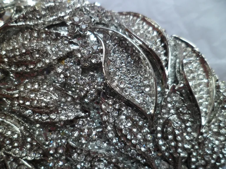 Estruturada em material metálico resistente, com forro em couro sintético premium e acabamento com detalhes vazados e aplicações de pedras.