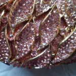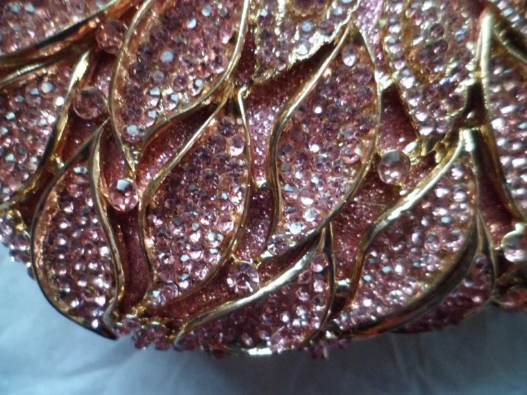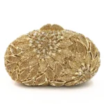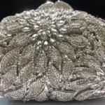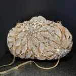 Modelo minaudière com formato rígido, abertura superior e alça única. Perfeita para complementar looks elegantes com brilho e estilo moderno.
