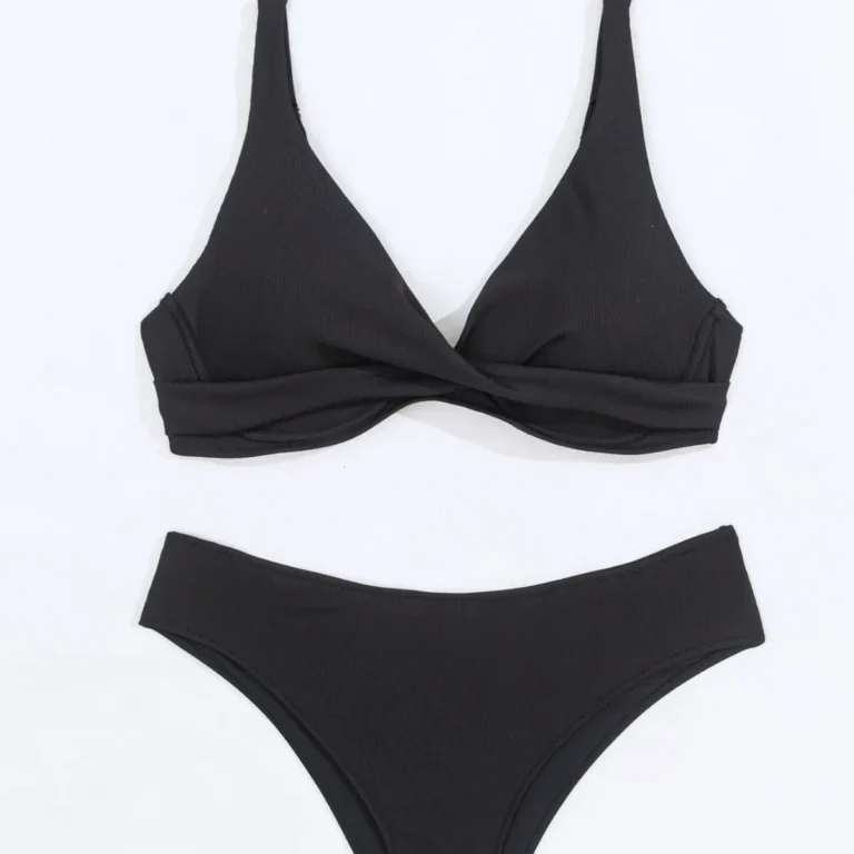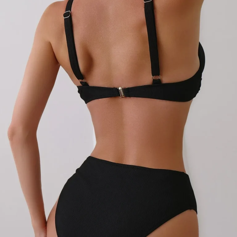 Conjunto de biquíni feminino de 2 peças, com decote em V profundo e calcinha de cintura alta, desenvolvido para unir estilo esportivo, conforto e valorização das curvas!