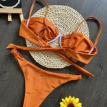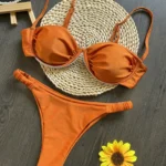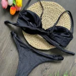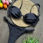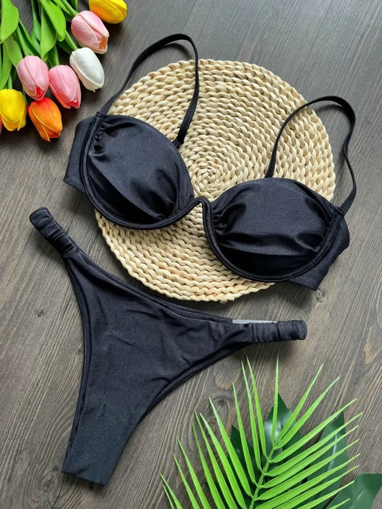 Confeccionado em náilon e fibras sintéticas, com artesanato em malha, este conjunto de biquíni oferece toque macio e boa respirabilidade. Possui almofadas internas e sutiã com aro, garantindo sustentação, conforto e melhor modelagem do busto. A cintura média proporciona equilíbrio entre segurança e conforto para uso prolongado.