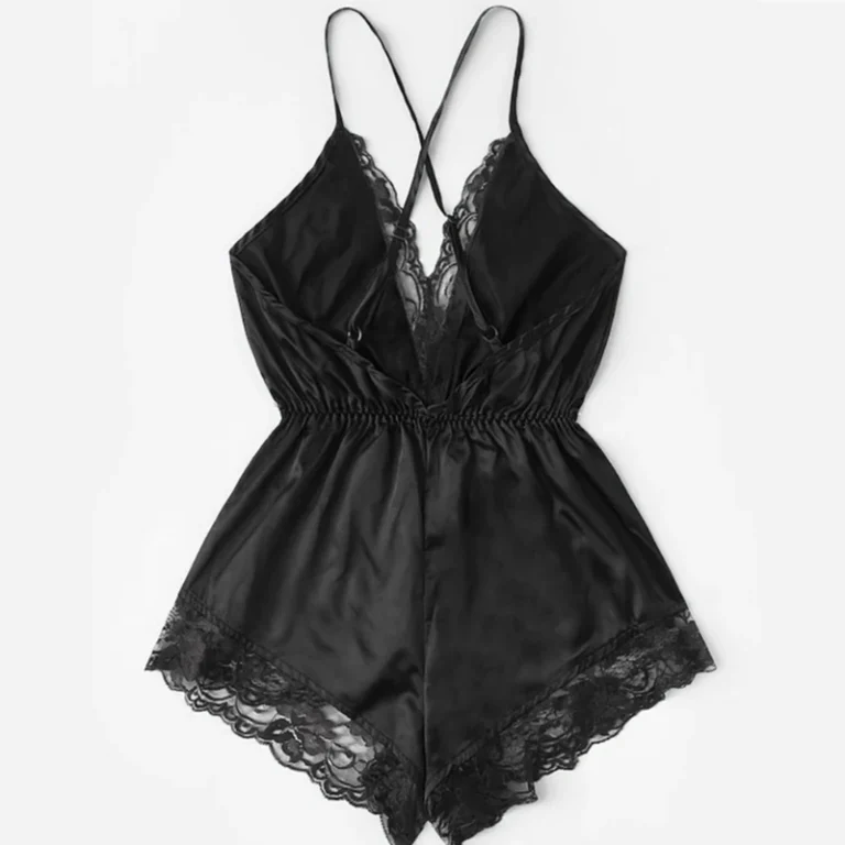 Pijama estilo macacão com visual sensual e delicado, ideal para quem busca conforto com um toque sofisticado. O decote em V e os detalhes em renda valorizam o corpo, enquanto o tecido fino garante leveza ao vestir.
