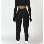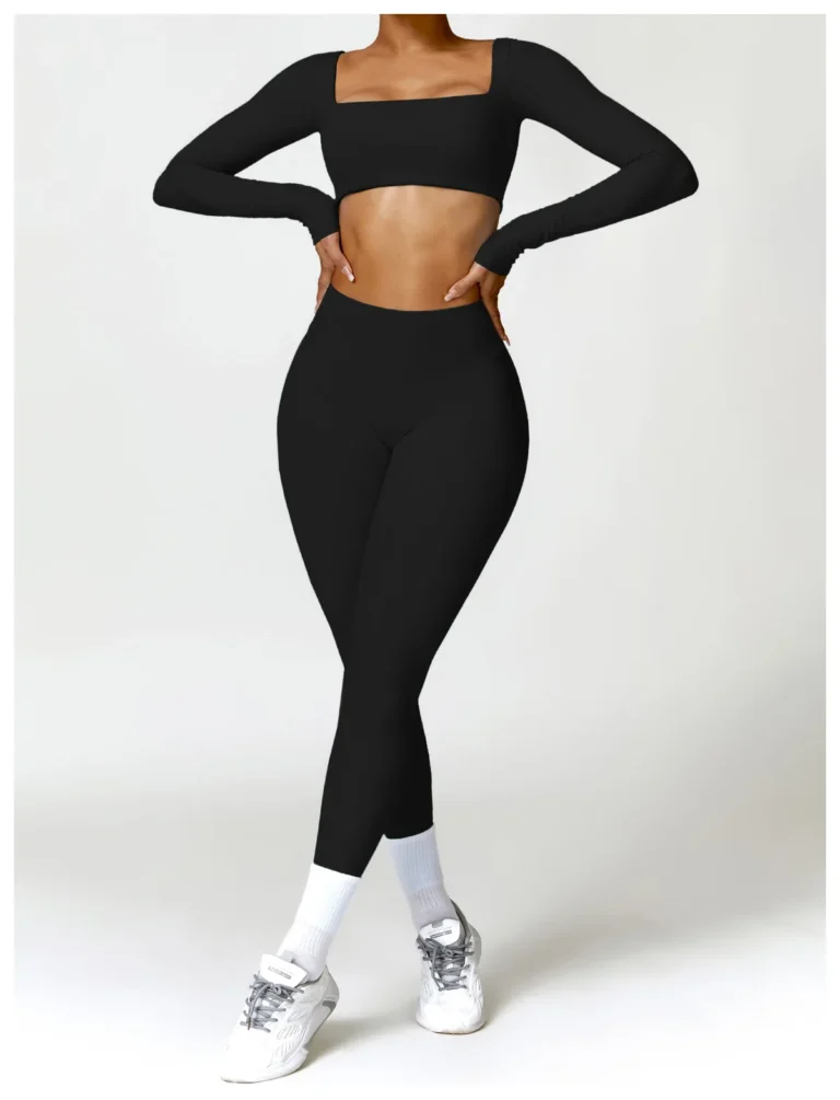 Conjunto esportivo feminino projetado para oferecer beleza, conforto e performance, ideal para treinos de yoga, corrida e academia.