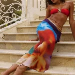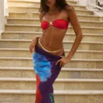 Conjunto de duas peças com mini saia e top curto com estampa floral desenvolvido para uso em ambientes de praia. Além disso a peça apresenta silhueta bainha com comprimento acima do joelho, decote sem alças e possui ajuste fino ao corpo com cintura elástica.