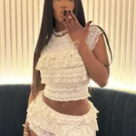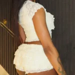 Conjunto composto por top e saia com silhueta de vestido de baile e comprimento mini. Além disso a peça apresenta gola redonda, design sem mangas e é confeccionado em mistura de poliéster e elastano com modelagem fina e fechamento por cintura elástica.