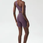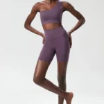Conjunto esportivo sem mangas voltado para a prática de ioga e atividades físicas confeccionado em mistura de náilon e elastano.