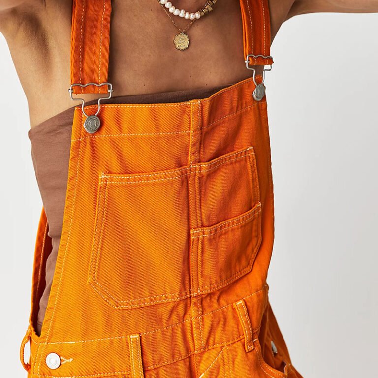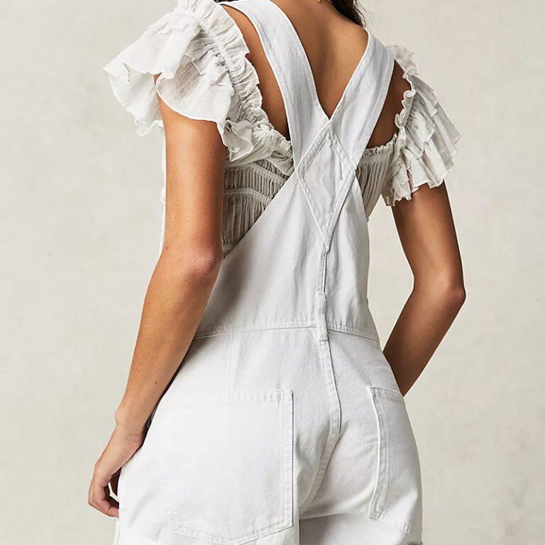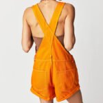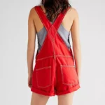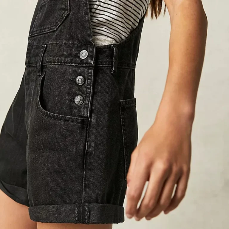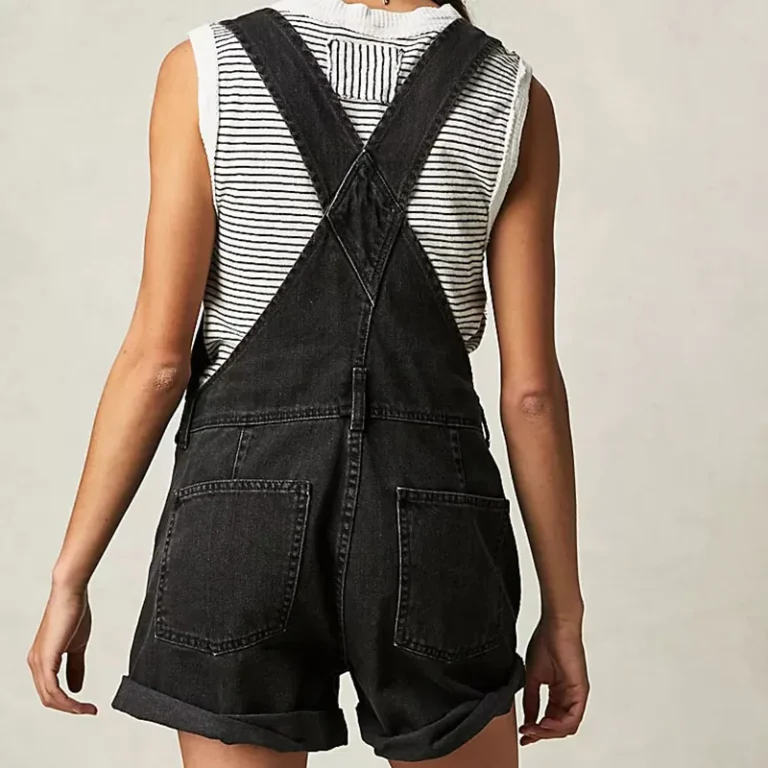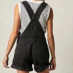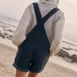 Este macacão curto é uma peça clássica e funcional. Com um design de cintura alta e corte reto, ele foca na praticidade do dia a dia, destacando-se pela presença de bolsos, um detalhe essencial para o estilo casual e utilitário.