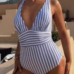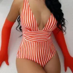 Este maiô listrado de uma peça traz decote em V e modelagem que valoriza o corpo, oferecendo estilo e firmeza para dias de calor. Ideal para quem busca um visual moderno, sexy e confortável.