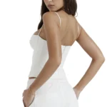 Esta regata é a peça “coringa” para o guarda-roupa. Com foco no estilo casual, ela apresenta um corte cropped e um design ousado com as costas nuas, ideal para saídas noturnas, festivais ou eventos casuais sob o sol. Confeccionada em tecido de casimira de poliéster, a peça oferece um toque macio e um ligeiro estiramento que garante um ajuste justo e lisonjeiro ao corpo.
