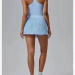 Esta saia esportiva plissada 2 em 1 oferece estilo e segurança para atividades físicas como tênis, badminton, golfe e treinos gerais. O design de falsa dupla camada garante proteção anti-exposição, enquanto o tecido leve proporciona conforto e liberdade de movimento.