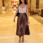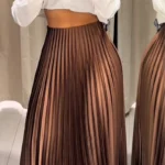 A saia midi plissada combina elegância e praticidade, oferecendo um visual moderno com pregas que criam movimento e sofisticação. Seu design de cintura alta valoriza a silhueta, enquanto o comprimento até a panturrilha torna a peça versátil para diversas ocasiões. Ideal para quem busca um estilo elegante e confortável durante todo o ano.