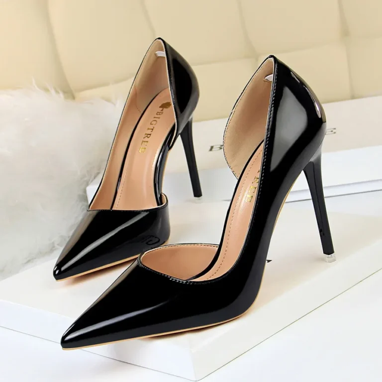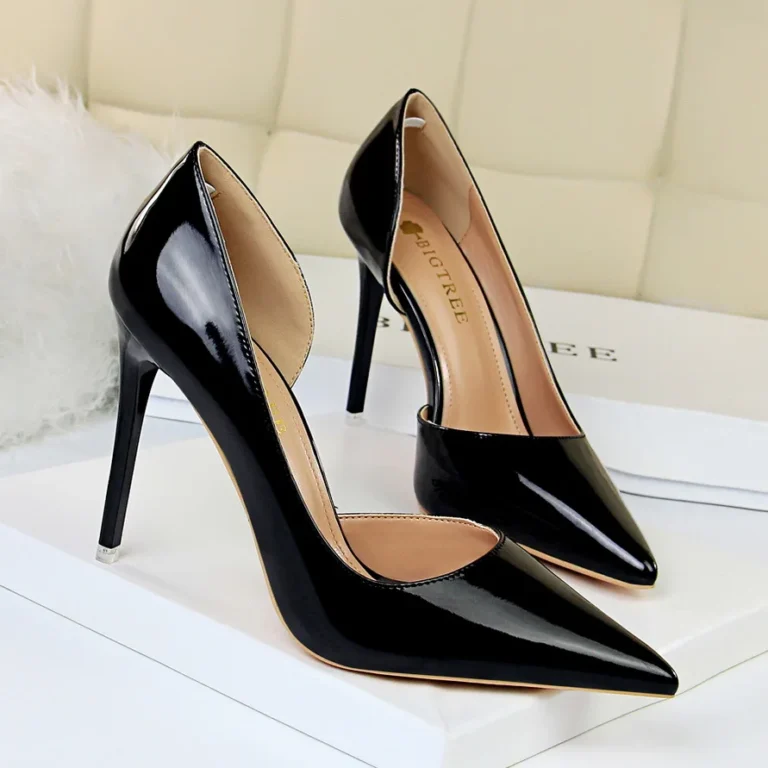 Sapato scarpin de estilo moda e sofisticado, ideal para ocasiões de vestido e eventos que pedem elegância. Produzido de forma artesanal, o modelo apresenta bico fino e salto fino super alto, proporcionando um visual alongado e refinado.