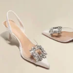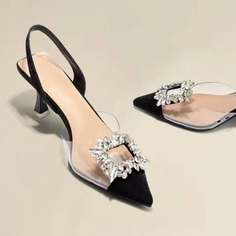 Salto baixo que se destaca pelo seu material em PVC transparente, que cria um efeito visual “invisível” e sexy, complementado por luxuosos detalhes em cristal! O diferencial artístico fica por conta do salto de estilo estranho com altura entre 5 cm e 8 cm.