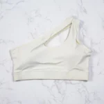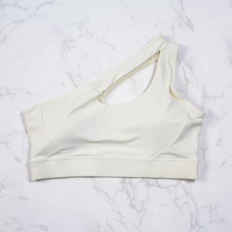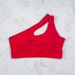 Top esportivo de um ombro desenvolvido para ioga e atividades físicas confeccionado em mistura de náilon e elastano. A peça apresenta tecnologia de tecelagem em tricô com propriedades respiráveis e de secagem rápida para maior conforto térmico. Além disso o modelo possui design assimétrico e inclui almofada de peito removível para suporte versátil durante o uso.