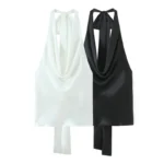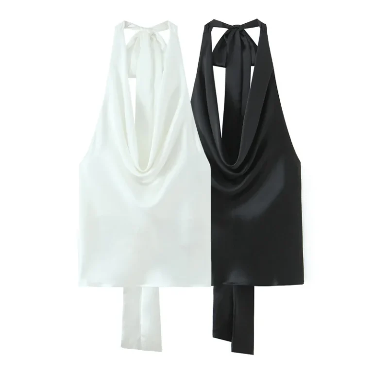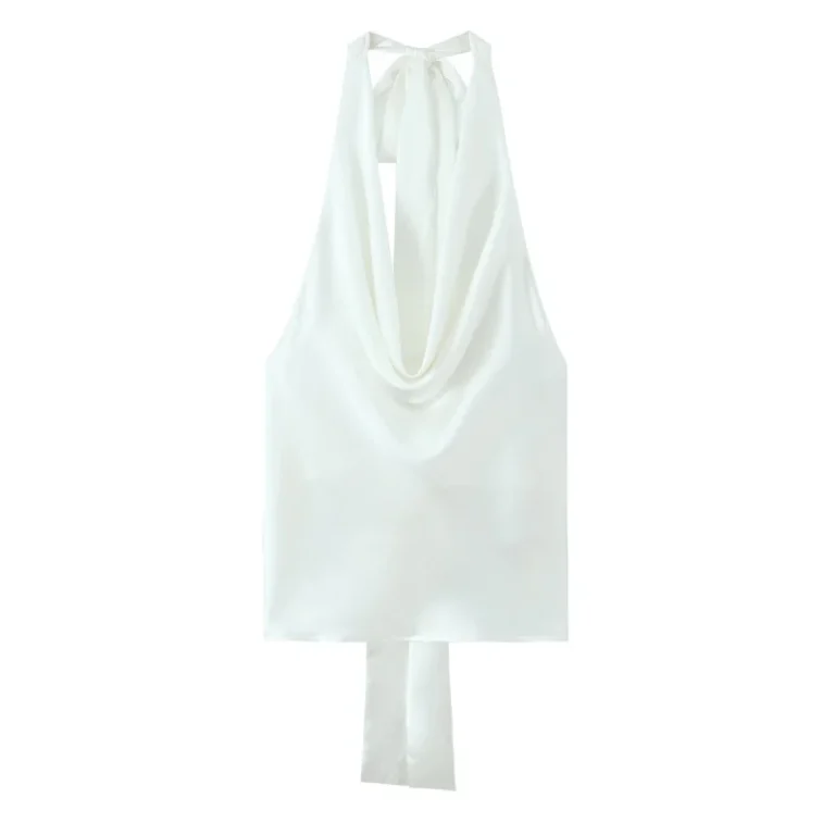 Top de cetim elegante com caimento leve e design halter, trazendo estilo e conforto para dias quentes.