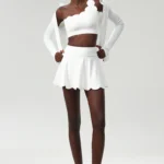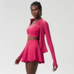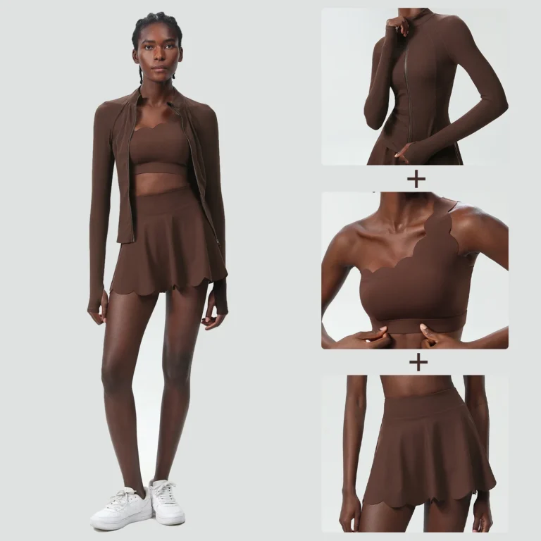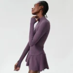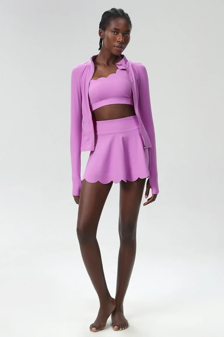 Conjunto esportivo com mangas compridas desenvolvido para ioga e atividades físicas de alta performance confeccionado em mistura de náilon e elastano. Além disso a peça apresenta tecnologia de tecelagem em tricô com propriedades de secagem rápida e alta respirabilidade.