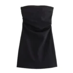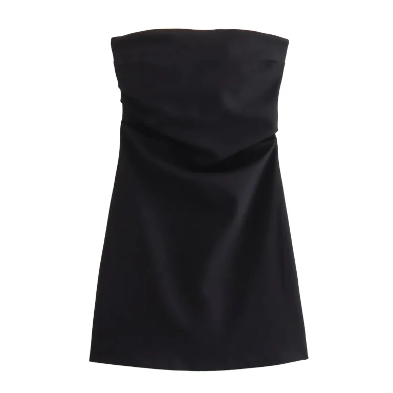 Vestido sem alças com silhueta reta e ajuste fino, ideal para quem busca um visual marcante. Além disso, o modelo apresenta um design de envoltório no peito que valoriza o colo, com comprimento mini acima do joelho e cintura natural, proporcionando uma estética moderna e audaciosa. Confeccionado em poliéster com leve elasticidade e fechamento prático por zíper, esta peça versátil é adequada para todas as estações, garantindo um caimento estruturado e sofisticado para diversas ocasiões sociais.