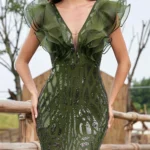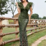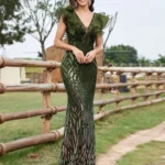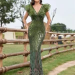 Vestido longo estilo sereia, sofisticado e atemporal com acabamento elegante, ideal para ocasiões formais e eventos noturnos especiais.