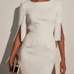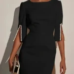Vestido midi com silhueta em linha A e comprimento no meio da panturrilha confeccionado em poliéster. Além disso a peça apresenta decote em gola O e design sem mangas com cintura de caimento natural. O modelo possui decoração em apliques, fechamento por zíper e ligeiro estiramento para um ajuste regulado.