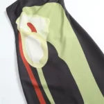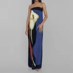 Vestido longo com silhueta linha A e decote sem alças desenvolvido para o estilo boêmio. A peça apresenta comprimento até o tornozelo com cintura império, fechamento por zíper e o modelo possui ajuste fino ao corpo com acabamento em estampa floral.
