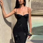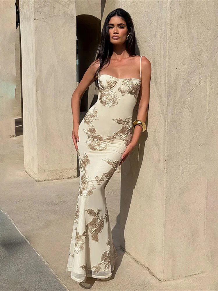 Vestido longo com estampa floral e decote em V desenvolvido para eventos sociais e lazer. Além disso o modelo possui alta elasticidade com ajuste fino ao corpo e acabamento sem mangas.