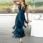 Vestido longo que une sofisticação e sensualidade na medida certa! O decote em V valoriza o colo com delicadeza e a cintura alta alonga a silhueta e destaca o corpo de forma elegante. Além disso, a saia longa em A-line garante movimento fluido e gracioso, ideal para dançar e caminhar com conforto. O vestido é confeccionado em poliéster com leve elasticidade, o vestido oferece ótimo caimento, toque suave e conforto durante todo o uso.