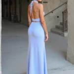 Este vestido longo sem costas combina sensualidade e simplicidade em uma peça marcante. O decote halter valoriza os ombros e alonga a silhueta, enquanto o design sem costas cria um visual moderno, ousado e perfeito para ambientes praianos ou eventos ao ar livre. A modelagem bainha (sheath) realça o corpo com elegância, proporcionando um caimento ajustado graças à sua alta elasticidade.