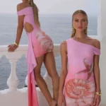 Vestido curto com silhueta bainha e decote de colar diagonal desenvolvido para ocasiões sociais e lazer. A peça apresenta comprimento acima do joelho com design sem mangas, detalhes decorativos em recorte vazado e o modelo também possui alta elasticidade com ajuste fino ao corpo.
