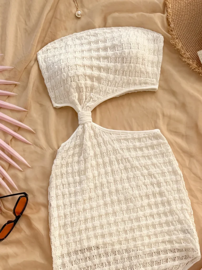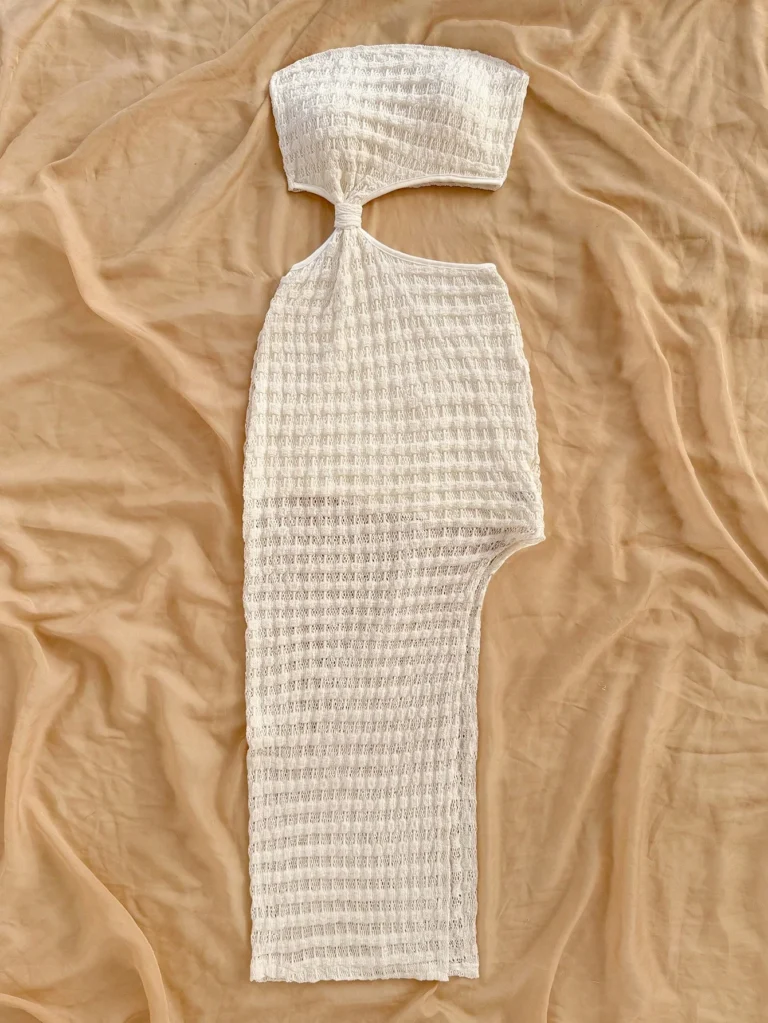 Vestido longo com design moderno e que apresenta um estilo sem alças (tomara que caia) com o sofisticado decote sem costas, proporcionando um toque de sensualidade casual.
