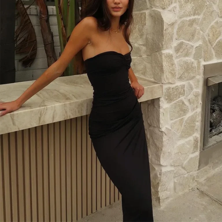 Casual e sofisticado, com silhueta em bainha que valoriza a forma natural do corpo. Sem mangas e com decote sem alças, ideal para dias quentes.