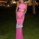 Vestido de silhueta bainha confeccionado em poliéster com elasticidade de estiramento médio. Além disso a peça apresenta comprimento até o meio da panturrilha e ajuste fino ao corpo