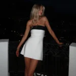 Vestido feminino mini acima do joelho, com design tomara que caia e modelagem justa ao corpo, ideal para produções noturnas e looks sensuais!