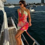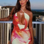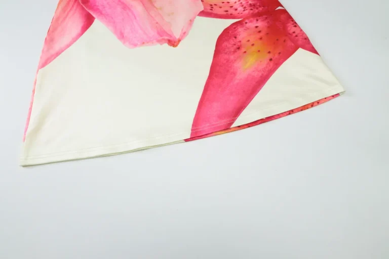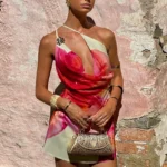 Vestido curto com silhueta reta e decote em V. A peça apresenta comprimento mini acima do joelho com cintura natural e possui alta elasticidade com ajuste fino ao corpo e acabamento estampado, proporcionando brilho e destaque.