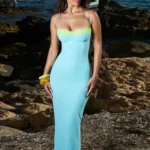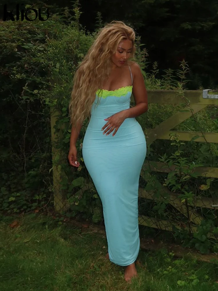 Vestido longo com silhueta bainha e design de alças de espaguete desenvolvido para o estilo urbano. A peça apresenta comprimento até o tornozelo, detalhe decorativo em patchwork com cintura natural e o modelo possui ajuste regulado com leve elasticidade.
