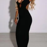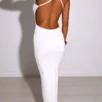 Vestido longo com silhueta bainha e decote em V desenvolvido para eventos sociais. A peça apresenta comprimento até o tornozelo, alças de espaguete com ajuste fino ao corpo e possui acabamento sólido e leve elasticidade para melhor caimento.