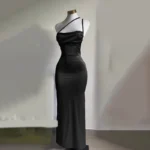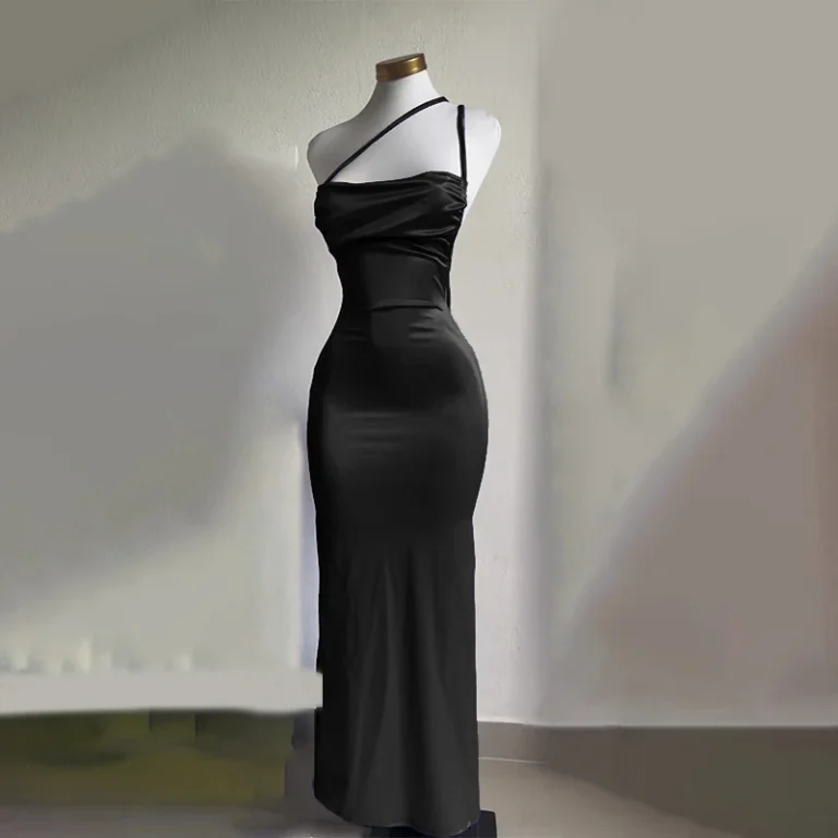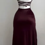 Vestido longo de comprimento até o chão com modelagem fina e silhueta reta confeccionado em poliéster e elastano. Além disso a peça apresenta gola redonda, alças de espaguete e tecido com ligeiro estiramento para melhor ajuste ao corpo.